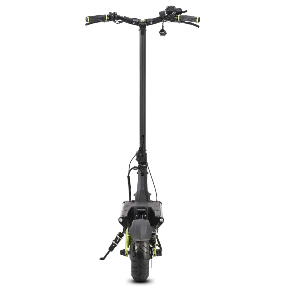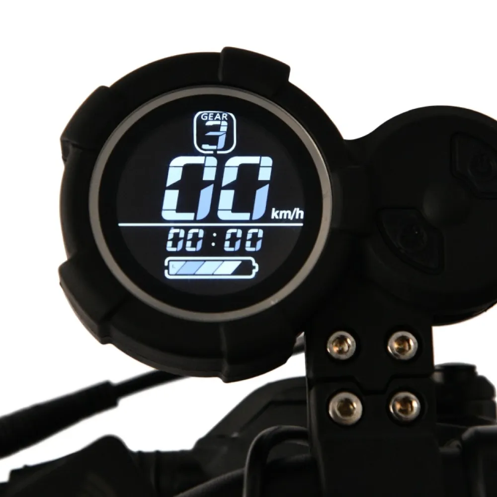 11-дюймовые накатистые колеса в сочетании с двигателем мощностью 3600 Вт способны развивать скорость до 75 км/час. Запас хода составляет 70 км. С  такими параметрами покупка дополнительных средств безопасности для ездока является обязательной. Модель выглядит привлекательно и современно. Оснащена вместительно прорезиненной платформой. Рулевая часть – удобная, оснащена нескользящими грипсами. Имеет информационный дисплей, благодаря которому пользователи способен мониторить скоростные показатели, степень заряда батареи и другие. Своевременность остановки обеспечена современной гидравлической тормозной системой. Наличие эргономичное подножки допускает парковку в труднодоступные места. Для заказа тс быстро предлагаем связаться с нами прямо сейчас.