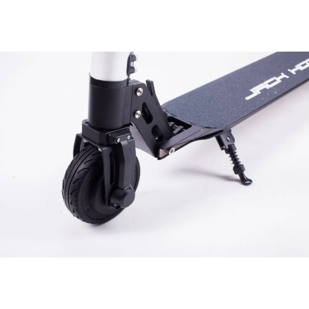 Отличительная особенность электросамоката от обычного самоката – встроенный электромотор, благодаря которому устройство способно развивать большую скорость, а вы не будете уставать во время поездок. Jack Hot AL не нужен бензин, источником энергии для него служит электричество – электросамокат заряжается от обычной электросети, и при полной разрядке аккумулятора, его емкость восстанавливается в течение нескольких часов.