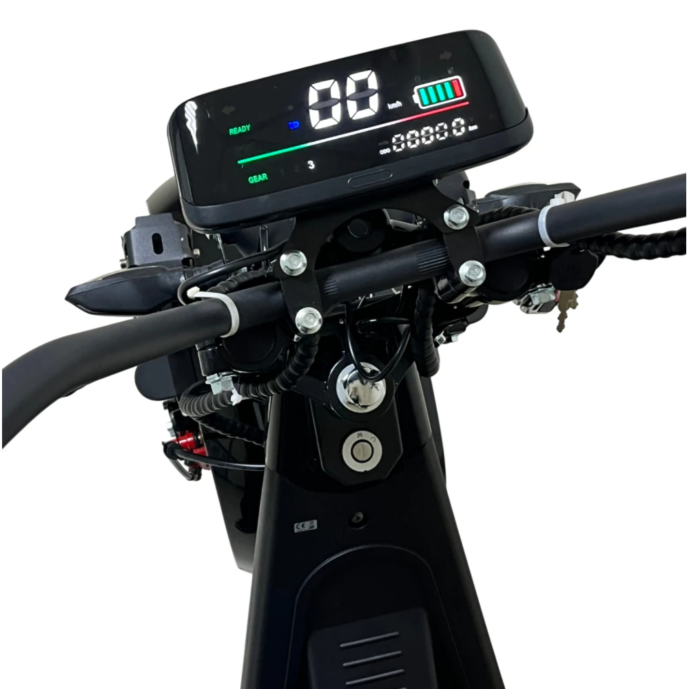 Электроскутер Citycoco GT E30 в черном глянцевом цвете — это универсальное средство передвижения. С мощностью 3000W и задним приводом, он обеспечивает отличную динамику и маневренность на городских улицах. Благодаря двухколесной конструкции и надувным колесам диаметром 18 дюймов, скутер уверенно держится на дороге, что делает его идеальным для поездок по различным покрытиям.Съемный аккумулятор с напряжением 60V позволяет преодолевать расстояние до 50 км на одном заряде, что делает его идеальным вариантом для ежедневных поездок. Время зарядки составляет всего 5 часов, что обеспечивает быструю готовность к новым приключениям. Кроме того, в конструкции предусмотрено дополнительное место под аккумулятор, что увеличивает возможности автономной работы.Скутер весит 75 кг и может выдерживать максимальную нагрузку до 200 кг, что делает его подходящим для различных пользователей. Дисковые гидравлические тормоза обеспечивают надежную остановку, а большое мягкое сиденье и амортизаторы гарантируют комфорт даже при длительных поездках.Дополнительно, Citycoco GT E30 оснащен бортовым компьютером, зеркалами, звуковым сигналом, фарой и поворотниками, что повышает безопасность и удобство. Большая дека под ноги и прочная конструкция делают поездки еще более приятными.Электроскутер Citycoco GT E30 — это идеальное сочетание стиля, мощности и комфорта для тех, кто ценит удобство и скорость в городской среде.