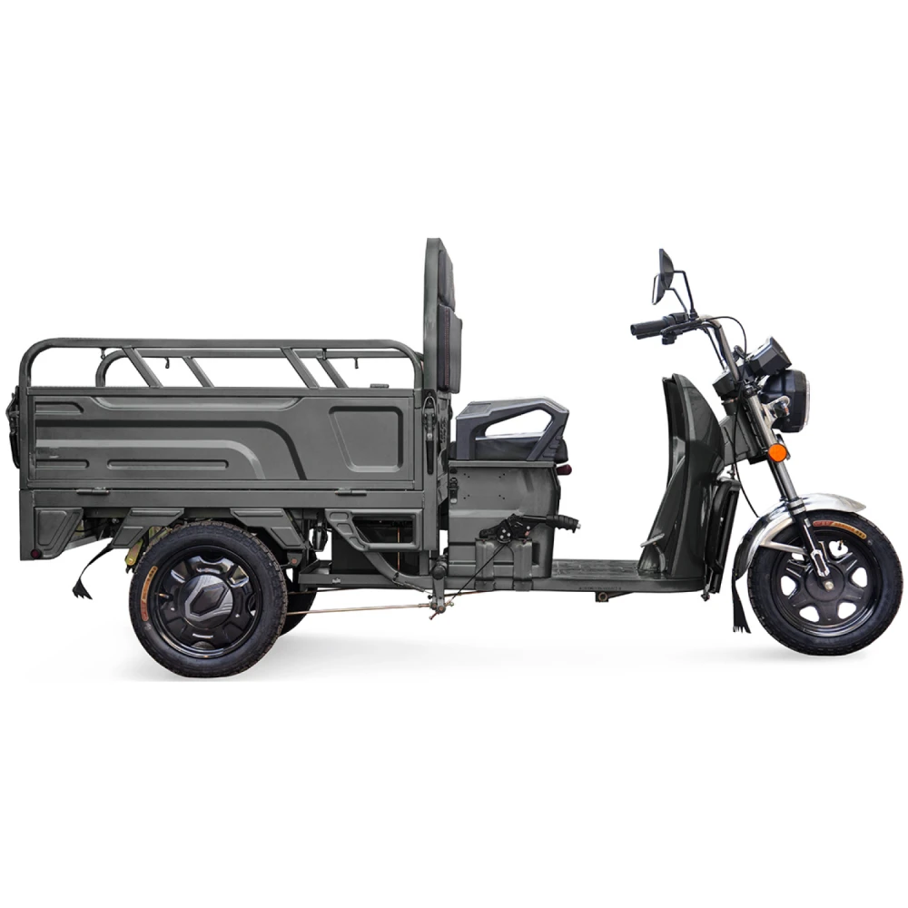 Использование высококачественного покрытия делает электротрицикл неуязвимым перед различными деформациями и повреждениями. Вилка и рулевая часть изготовлены из прочного металла. Пробег до 50 км на одном заряде допускается благодаря надежному аккумулятору. Главным козырем модели смело можно назвать наличие интеллектуального зарядного устройства. Для большей устойчивости на неровной дороге модель оснащена широкими колесами с протекторами.