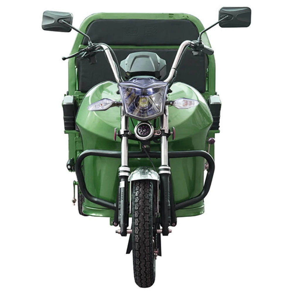 Модель представлена надежным двигателем 800 Вт и развивает скорость 25 км/час. Маневренность и сверхпроходимость обеспечивается гидравлической вилкой передней подвески с амортизацией. Достоинства и плюсы грузового электротрицикла несомненно оценят настоящие мужики. Мощная рама рассчитана на перевозку грузов 400 кг (110 кг сухого веса). Рулевую часть и широкое сидение можно регулировать по росту райдера для удобства поездок. Мощная батарея долго держит заряд и быстро заряжается за 8-10 часов. В кузове по необходимости можно устанавливать дополнительное пассажирское сидение. Оригинальная тормозная система позволяет быстро остановиться в форс-мажорных ситуациях.
